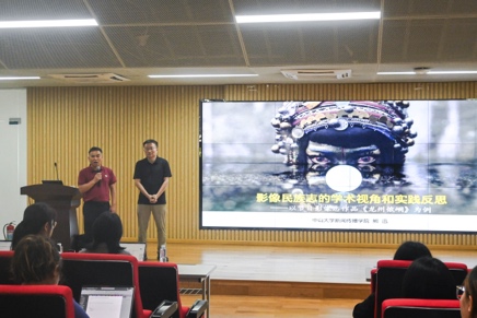 熊迅教授通过播放原创人类学纪录片《龙州侬峒》作为整场讲座的开场,以此为案例,介绍了作为研究方法的影像民族志;并基于自身的研究和摄制经历,生动地分享了人类学研究过程中的组织协调难点、文化交流差异等问题。熊迅教授指出,民族志在人类学研究中占据核心地位,而影像民族志则通过纪录片的形式,呈现出文化样态的整体性、专题性和时空特性。